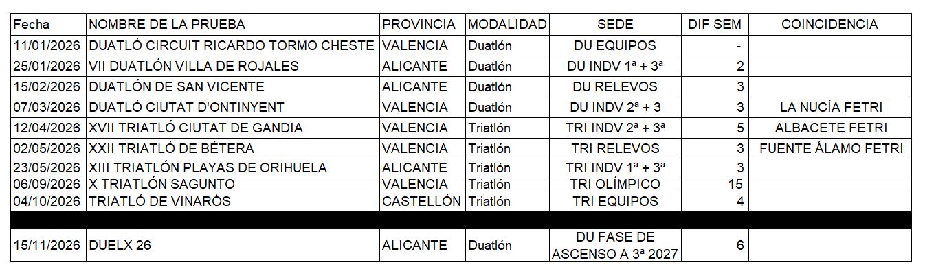 | 12/01/2025 | DUATLÓN RICARDO TORMO CHESTE |